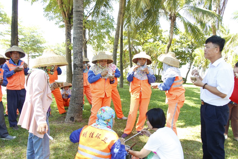 在鳳凰路一中路段、海虹廣場等地,正在清掃保潔作業(yè)的員工們頂著烈日,堅(jiān)守一線,為城市的干凈整潔不停歇地忙碌著。工會主席高斐斐表示,在這么炎熱的天氣下,員工們依舊堅(jiān)守在城市的大街小巷揮灑著汗水,十分辛苦。她叮囑員工們在保證工作質(zhì)量的同時,要科學(xué)調(diào)整作息時間,合理安排勞動生產(chǎn),確保在高溫天氣下作業(yè)安全。勉勵大家繼續(xù)發(fā)揚(yáng)明佳精神,為創(chuàng)造更加整潔、舒適、優(yōu)美的城市人居環(huán)境和“創(chuàng)文鞏衛(wèi)”工作作出更大貢獻(xiàn)。