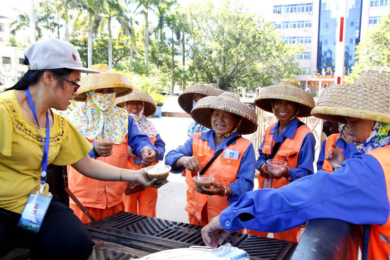 7月3日,集團(tuán)公司主席工會主席高斐斐率慰問組一行,到鳳凰路一中路段、海虹廣場等地為正在高溫下作業(yè)的員工送去降溫解暑的綠豆湯,送上公司以及工會組織的關(guān)懷和問候。