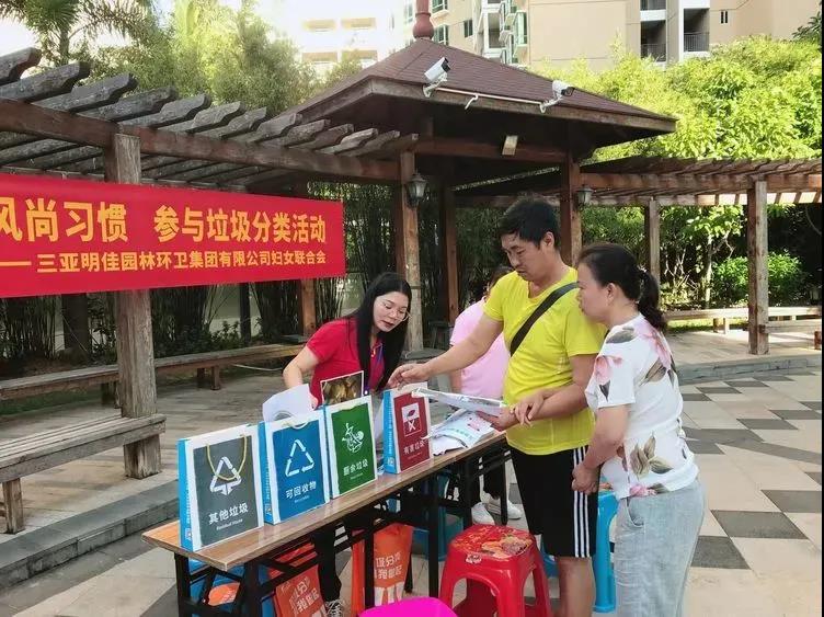 為進(jìn)一步強(qiáng)化小區(qū)居民對垃圾分類的認(rèn)識,不斷提高居民愛護(hù)環(huán)境、保護(hù)環(huán)境的意識,養(yǎng)成垃圾分類的好習(xí)慣,帶動更多人參與到垃圾分類的行動中來,助力三亞創(chuàng)建全國文明城市。11月17日9時,三亞明佳集團(tuán)黨支部、工會、婦聯(lián)、共青團(tuán)聯(lián)合在南新悅城小區(qū)開展“倡導(dǎo)文明風(fēng)尚習(xí)慣 參與垃圾分類活動”為主題的垃圾分類宣傳活動。