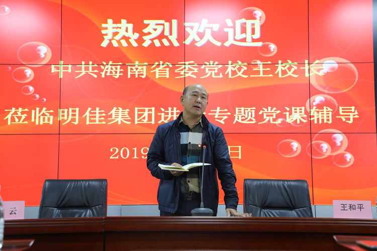 海南省委黨校常務副校長王和平蒞臨明佳集團做專題黨課輔導報告